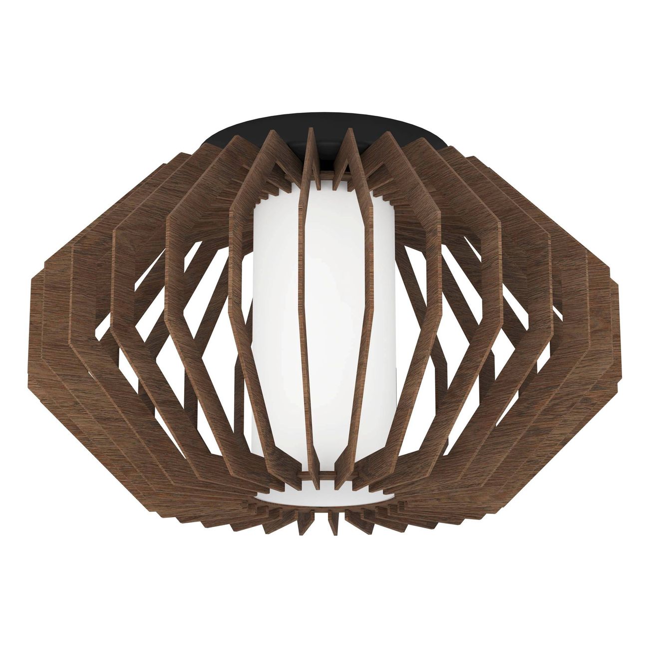 Velmi zajímavá svítidla do moderních interiérů. Základna je z oceli v černé barvě a stínidlo z dřevěných lamel v hnědé barvě sse skleněným bílým válcem, který v sobě ještě ukrývá žárovku, což po rozsvícení vypadá velmi efektně.