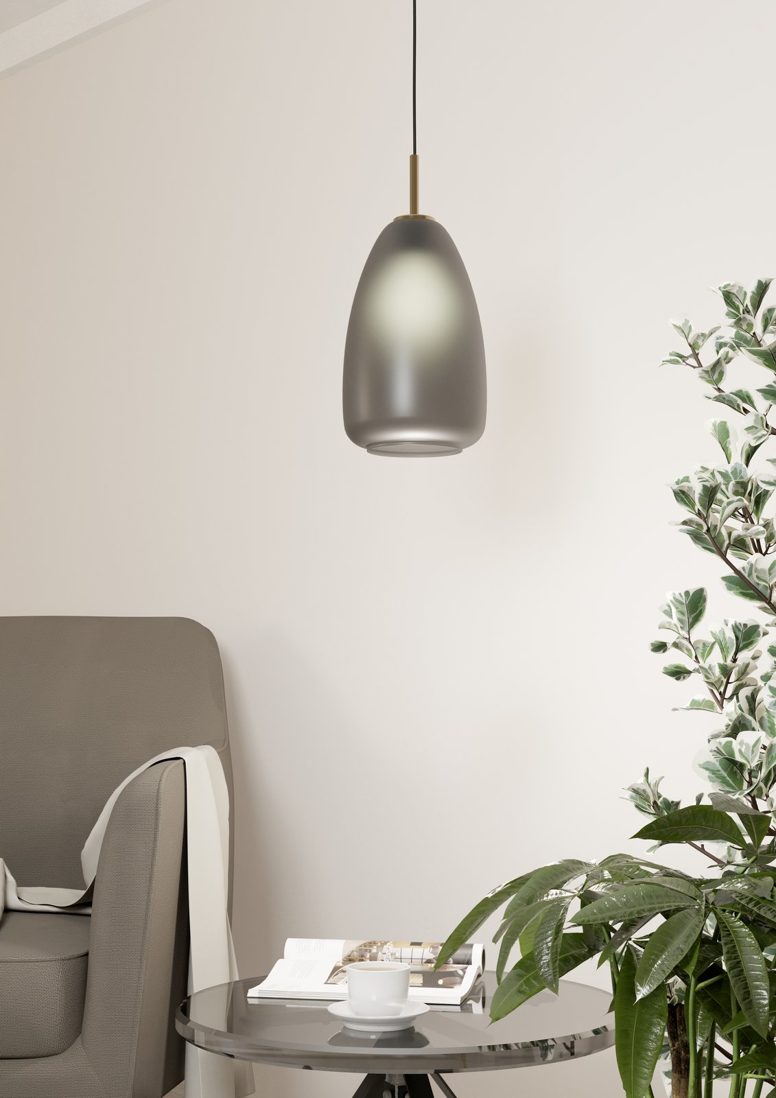 Moderní lustry vyrobené z oceli v černé barvě, stínidla jsou vyrobena ze skla v matné šedé barvě s mosazným prvkem. Jsou vhodné především do kuchyní a jídelen, nad jídelní stůl nebo kuchyňský ostrůvek. |