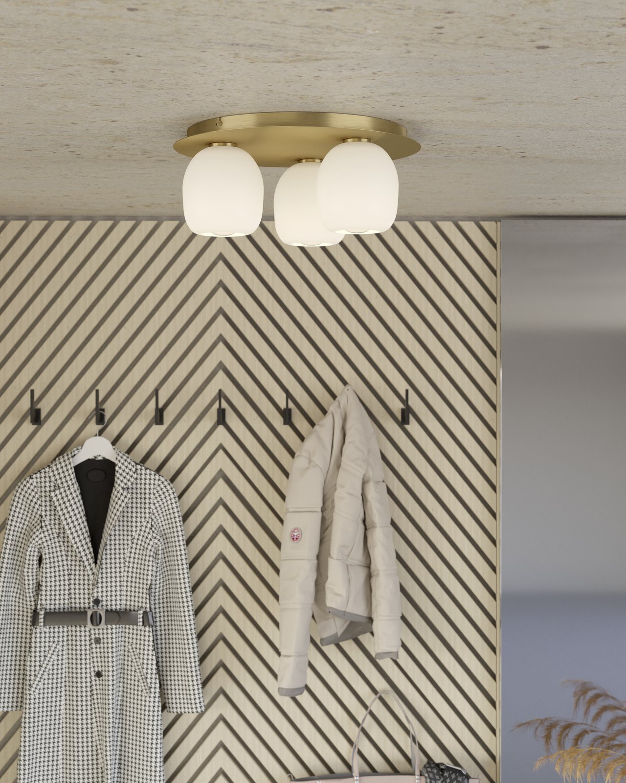 Zajímavá svítidla vyrobená z oceli v barvě broušená mosaz a zlatá a z matného opálového skla. Jsou vhodná do obývacích pokojů, kuchyní, jídelen ložnic i předsíní. |