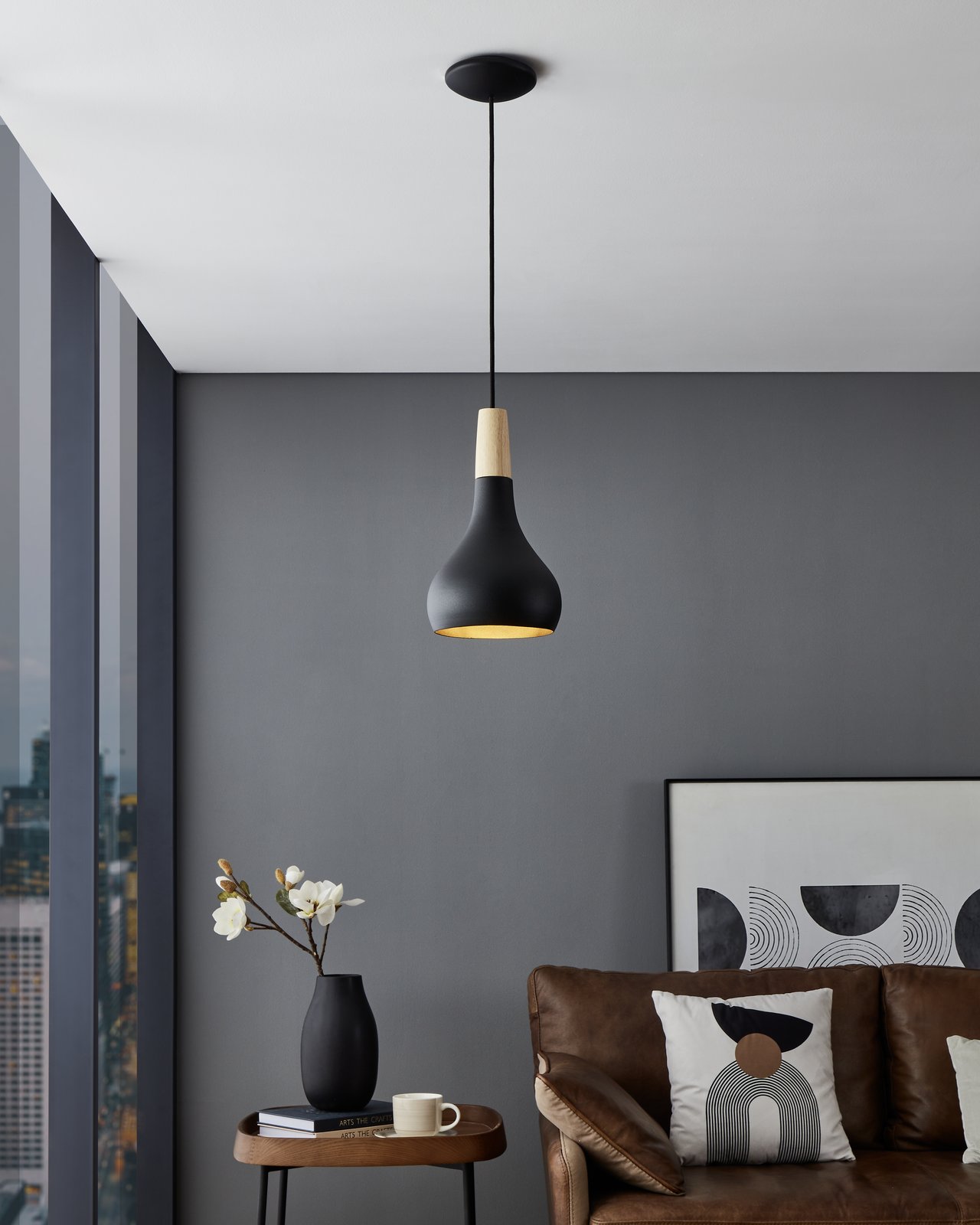 Moderní závěsná svítidla Sabinar jsou vyrobena z oceli v černé barvě, s dřevěným prvkem v hnědé barvě. Mají jednoduchý, čistý design, černá barva jim dodává elegantní vzhled, čímž se stávají ideální volbou pro váš interiér. |