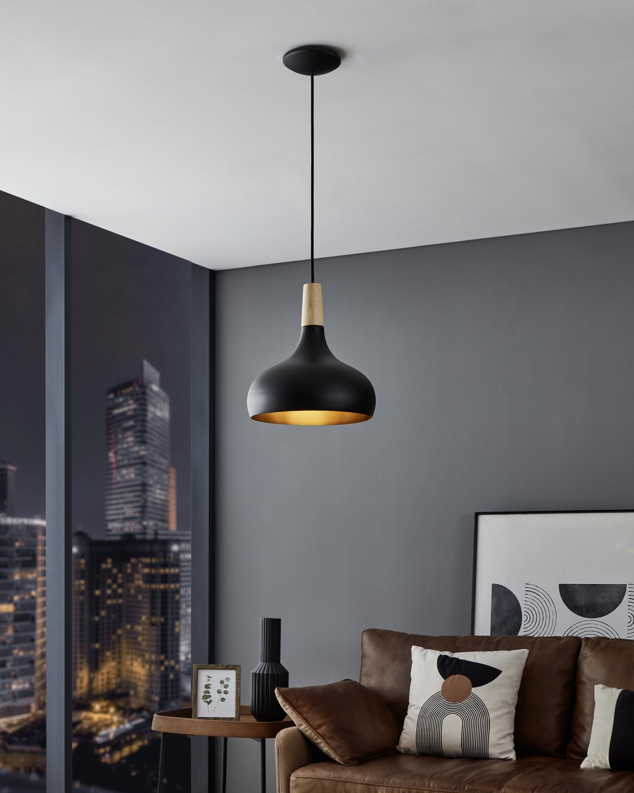 Moderní závěsná svítidla Sabinar jsou vyrobena z oceli v černé barvě, s dřevěným prvkem v hnědé barvě. Mají jednoduchý, čistý design, černá barva jim dodává elegantní vzhled, čímž se stávají ideální volbou pro váš interiér. |
