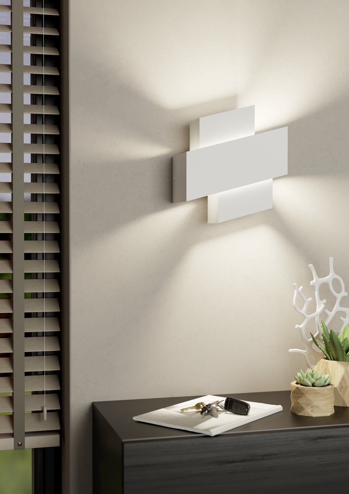 Designová nástěnná svítidla vyrobená z oceli. Hodí se k osvícení stěn v obývacím pokoji, ale i chodby a předsíně. |