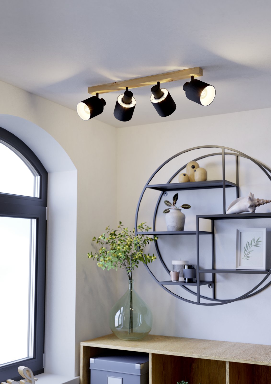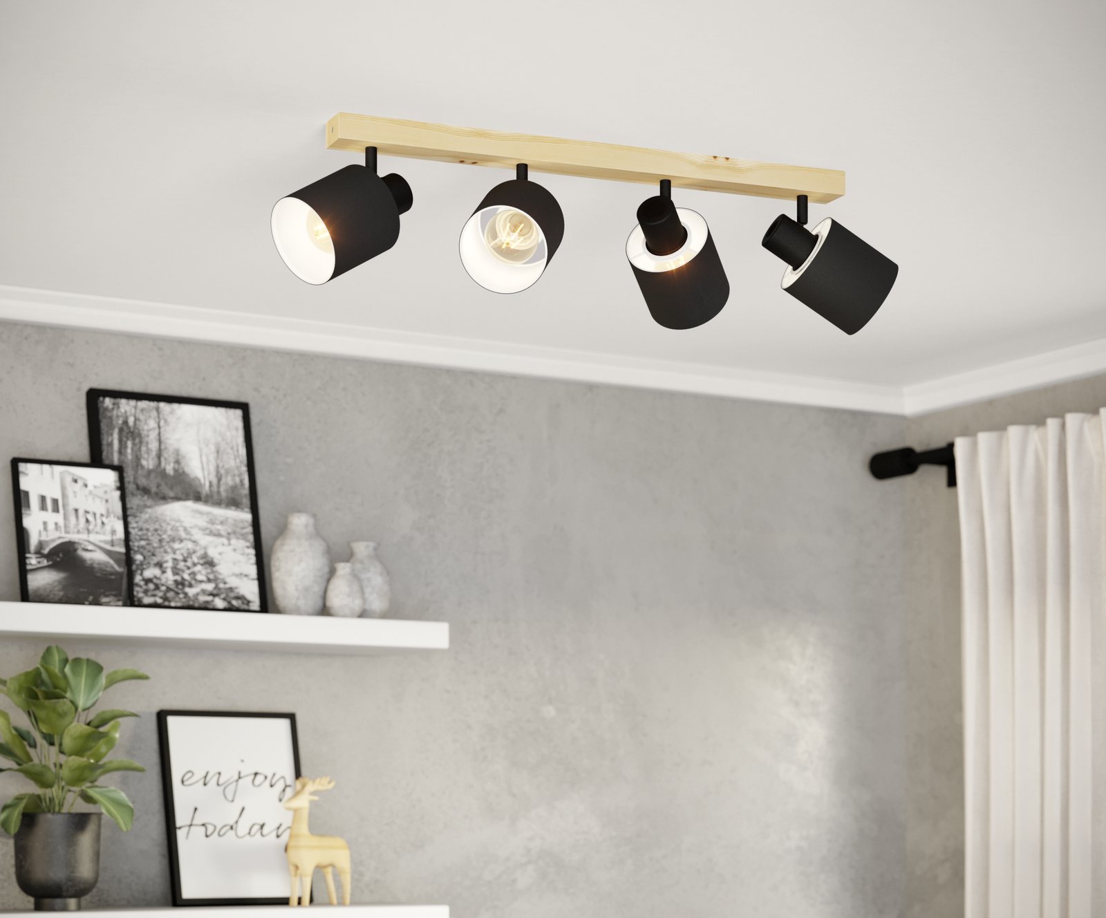 Elegantní bodová svítidla vyrobená z oceli v černé barvě, ze dřeva v hnědé a z textilu v černé a bílé barvě. Jsou vhodná do obývacích pokojů, ložnic, chodeb a předsíní. Výhodou těchto svítidel je, že mají naklápěcí hlavy, takže si posvítíte tam, kam zrovna potřebujete.