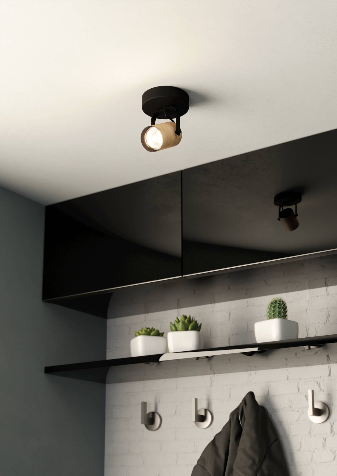 Moderní bodová svítidla Cayuca jsou vyrobena z oceli v černé barvě a ze dřeva v hnědé barvě. Dodávají se včetně žárovek se závitem GU10. |