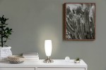 Lampička vhodná do interiérů v klasickém stylu. Postavte ji na konferenční stolek nebo komodu v obývacím pokoji, nebo na noční stolek do ložnice. Je vyrobena z oceli v barvě matný nikl a stínidlo je skleněné v bílé barvě. |