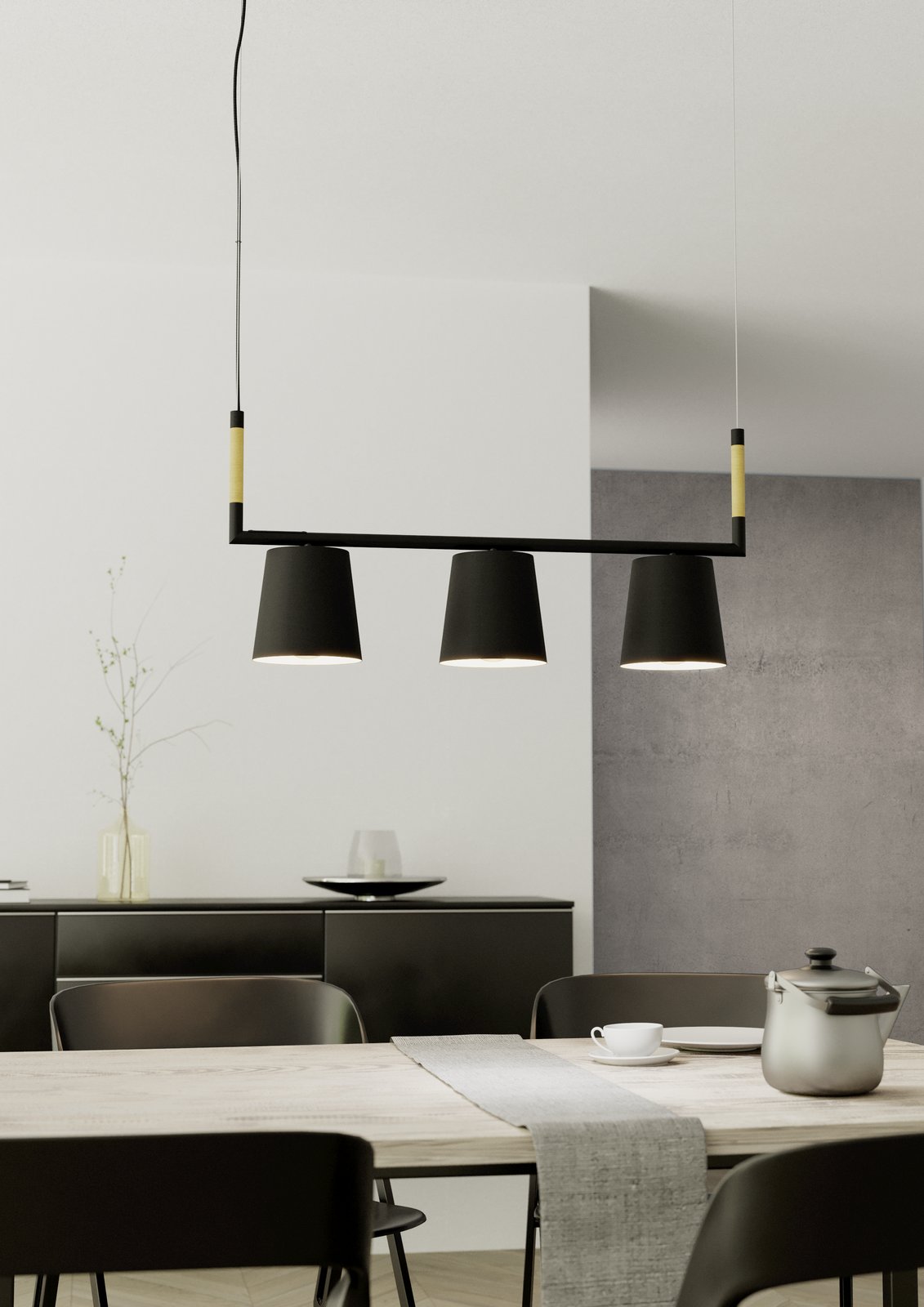 Moderní a stylová svítidla vhodná do všech moderních interiérů. Základna je vyrobena z oceli a dřeva v černé a hnědé barvě a klobouk je ocelový v kombinaci černé a krémové barvy. Hodí se k osvícení nejen kuchyně a jídelního koutu, ale také obývacího pokoje, ložnice a chodby. |