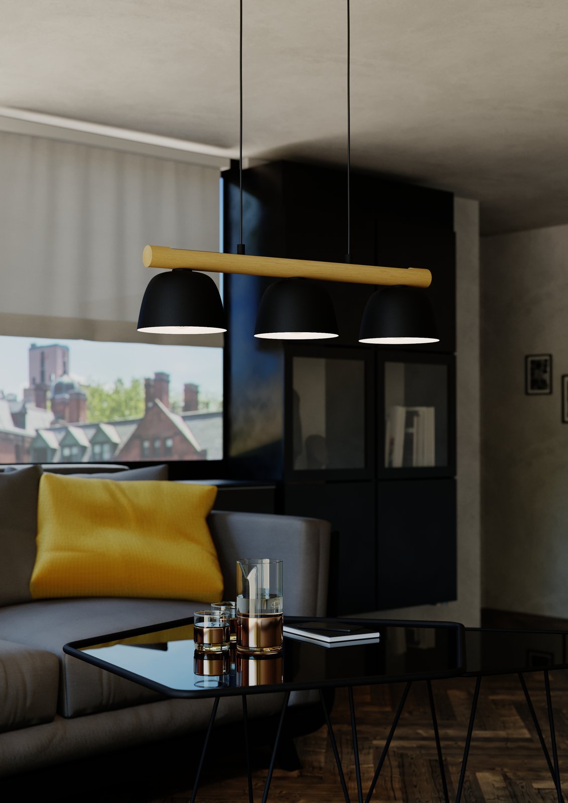 Moderní svítidla vyrobená z oceli v černé barvě a ze dřeva v hnědé barvě. Jsou vhodná do obývacích pokojů, ale i kuchyní, jídelen, ložnic a předsíní. |