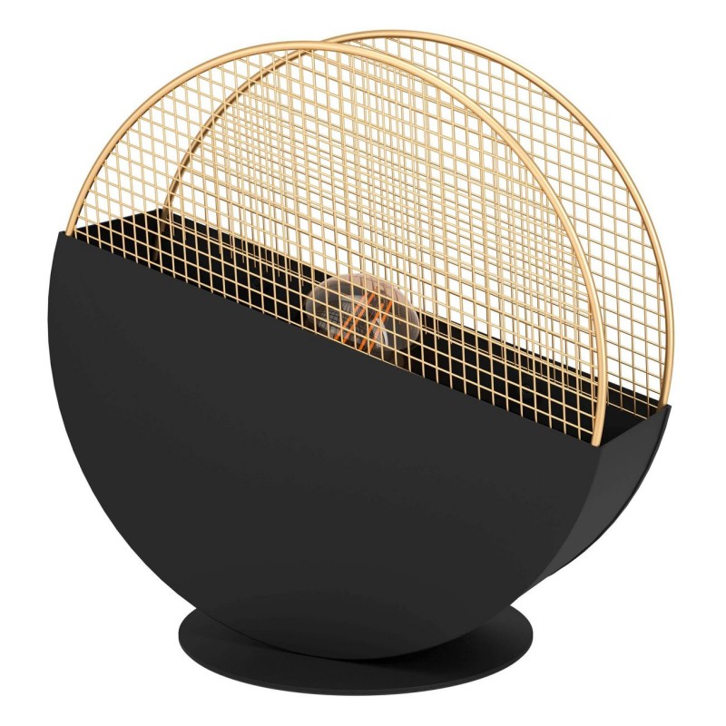 Stylová a moderní lampička vhodná na konferenční stolek nebo komodu do obývacího pokoje na navození příjemné atmosféry. Má tvar kruhu a je vyrobena z oceli v černé a zlaté barvě. |