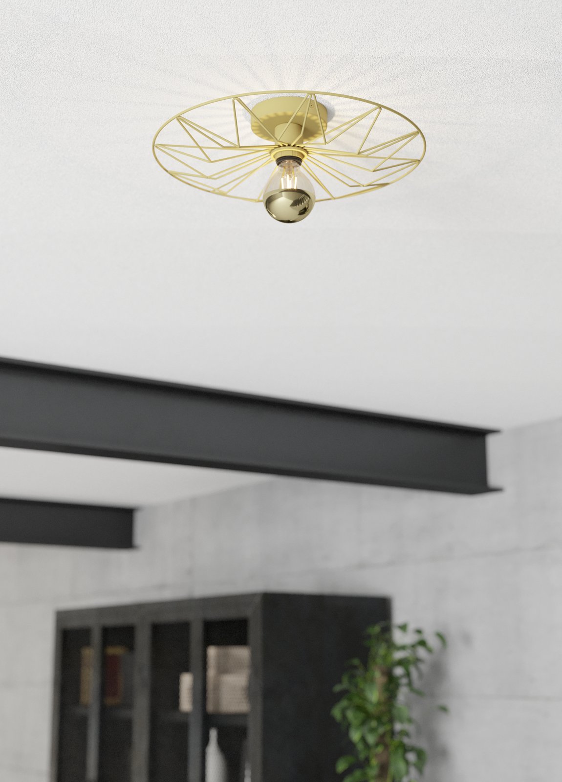 Designově zajímavá stropní svítidla (s možností umístění také na stěnu), vyrobená z oceli ve zlaté barvě. Jsou vhodná nejen do obývacích pokojů, ale také ložnic a předsíní. |