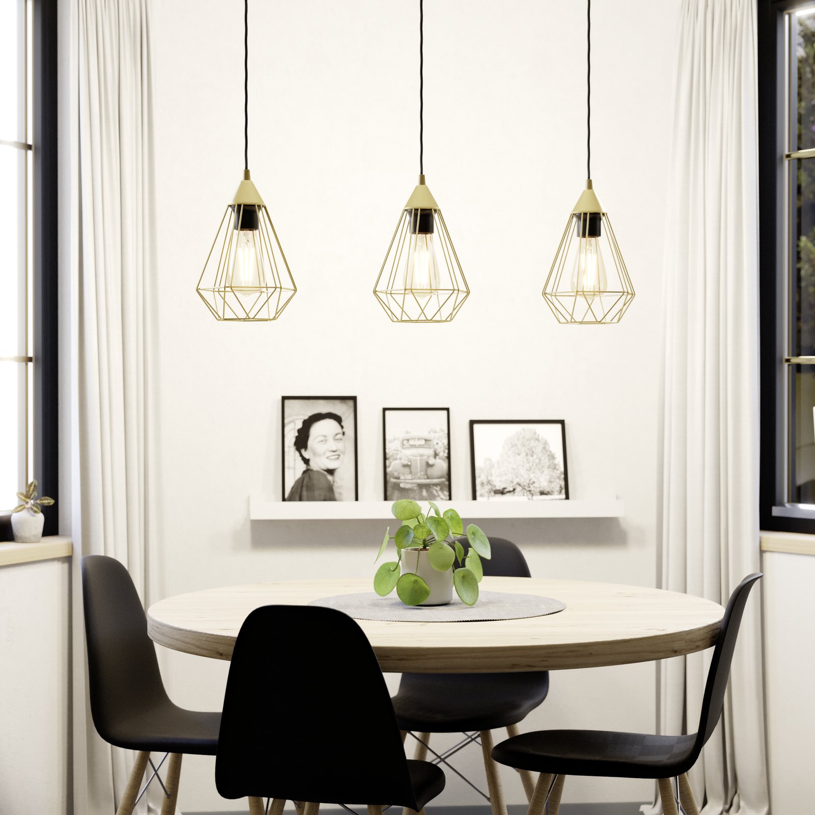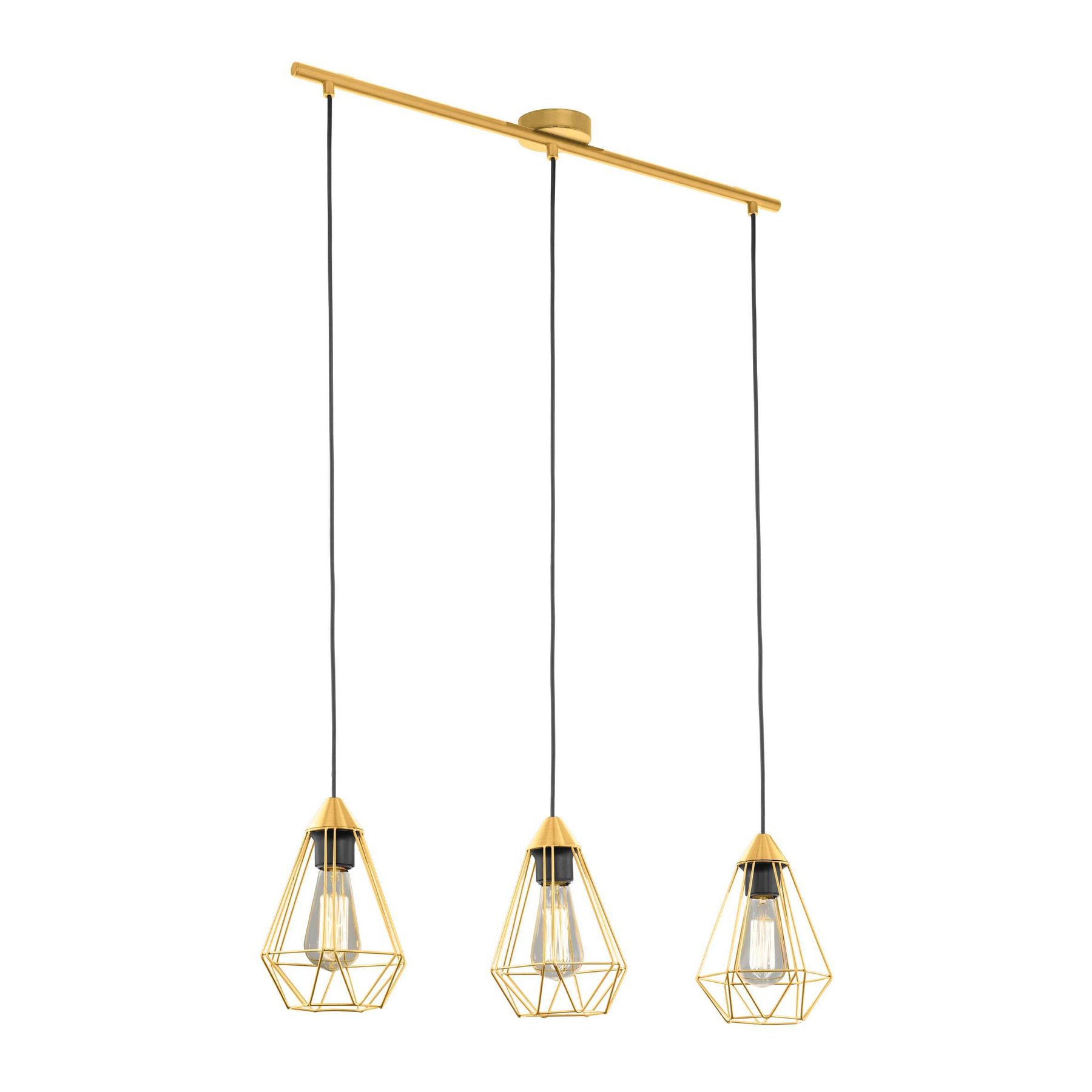Moderní kovová svítidla, vyrobená z oceli v barvě broušená mosaz a kabel, na kterém jsou svítidla zavěšena je černý. Jsou vhodná do kuchyní a jídelen ale i obývacích pokojů. |
