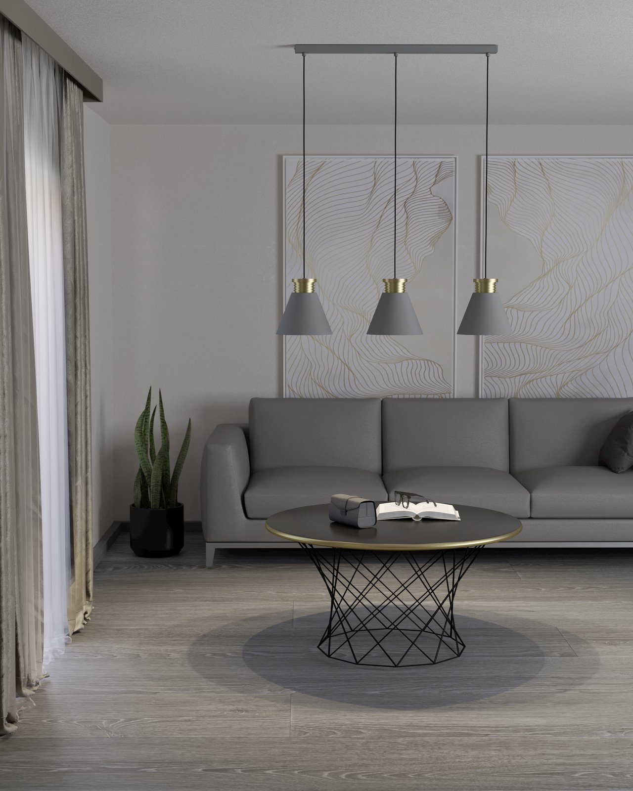 Jednoduchá svítidla vyrobená z oceli v šedé barvě se zlatým prvkem. Hodí se do obývacích pokojů, kuchyní a jídelen, ale i ložnic a předsíní. |