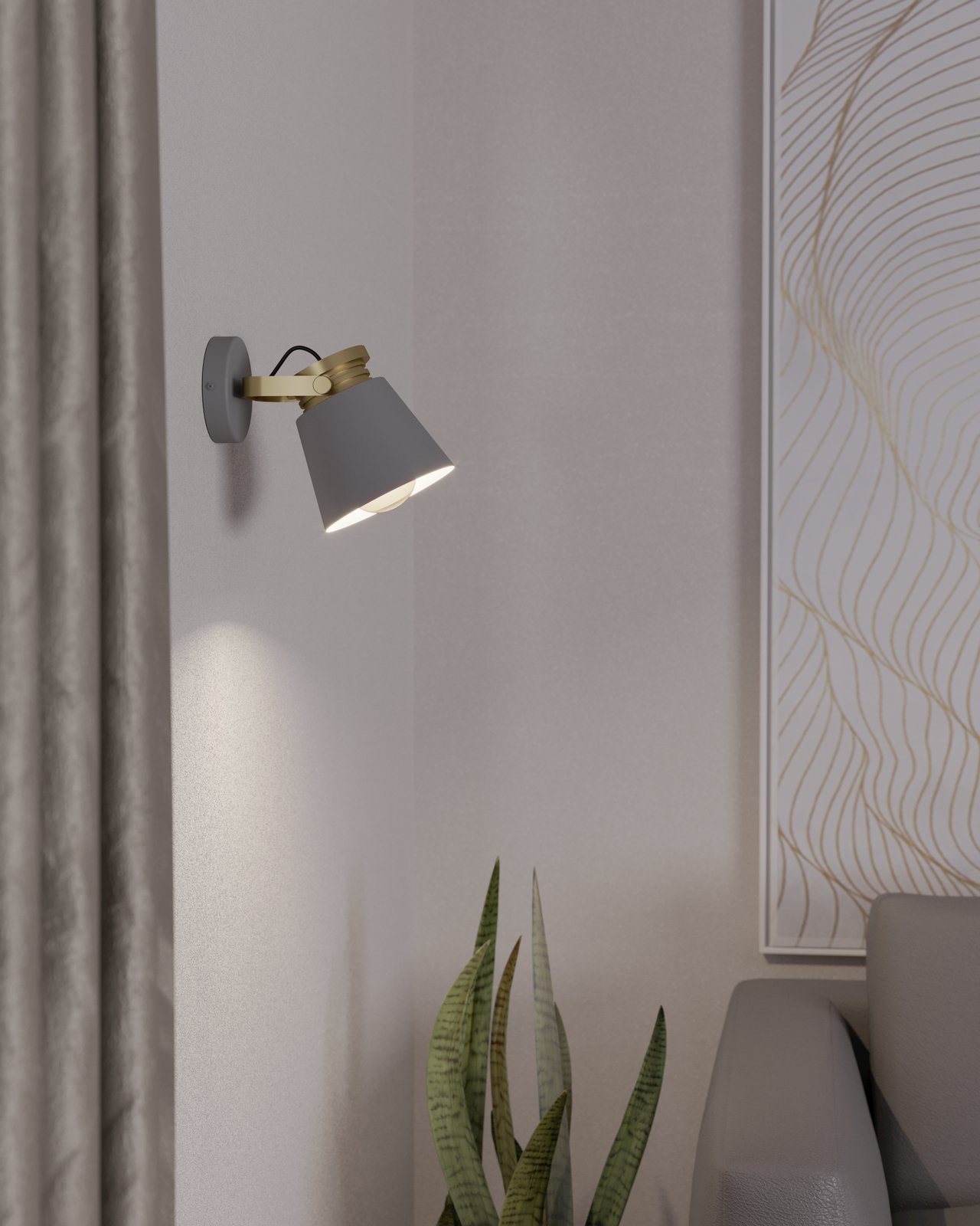Jednoduchá svítidla vyrobená z oceli v šedé barvě se zlatým prvkem. Hodí se do obývacích pokojů, kuchyní a jídelen, ale i ložnic a předsíní. |