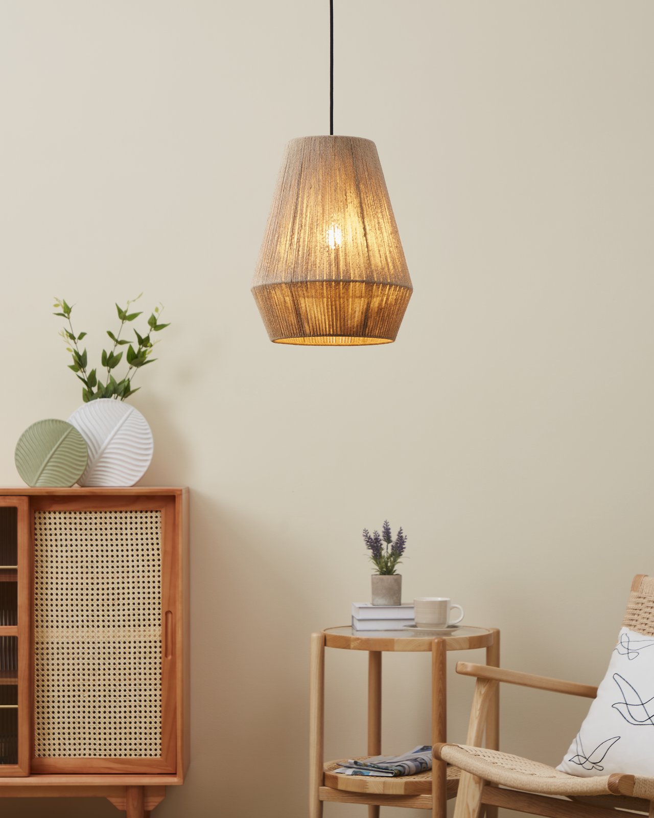 Velmi zajímavá svítidla vyrobená z oceli v černé barvě a stínidlo je vyrobeno z textilních přírodních nití. Lze je osadit chytrou LED žárovkou a přes chytrý telefon je stmívat nebo měnit barvu svícení. |