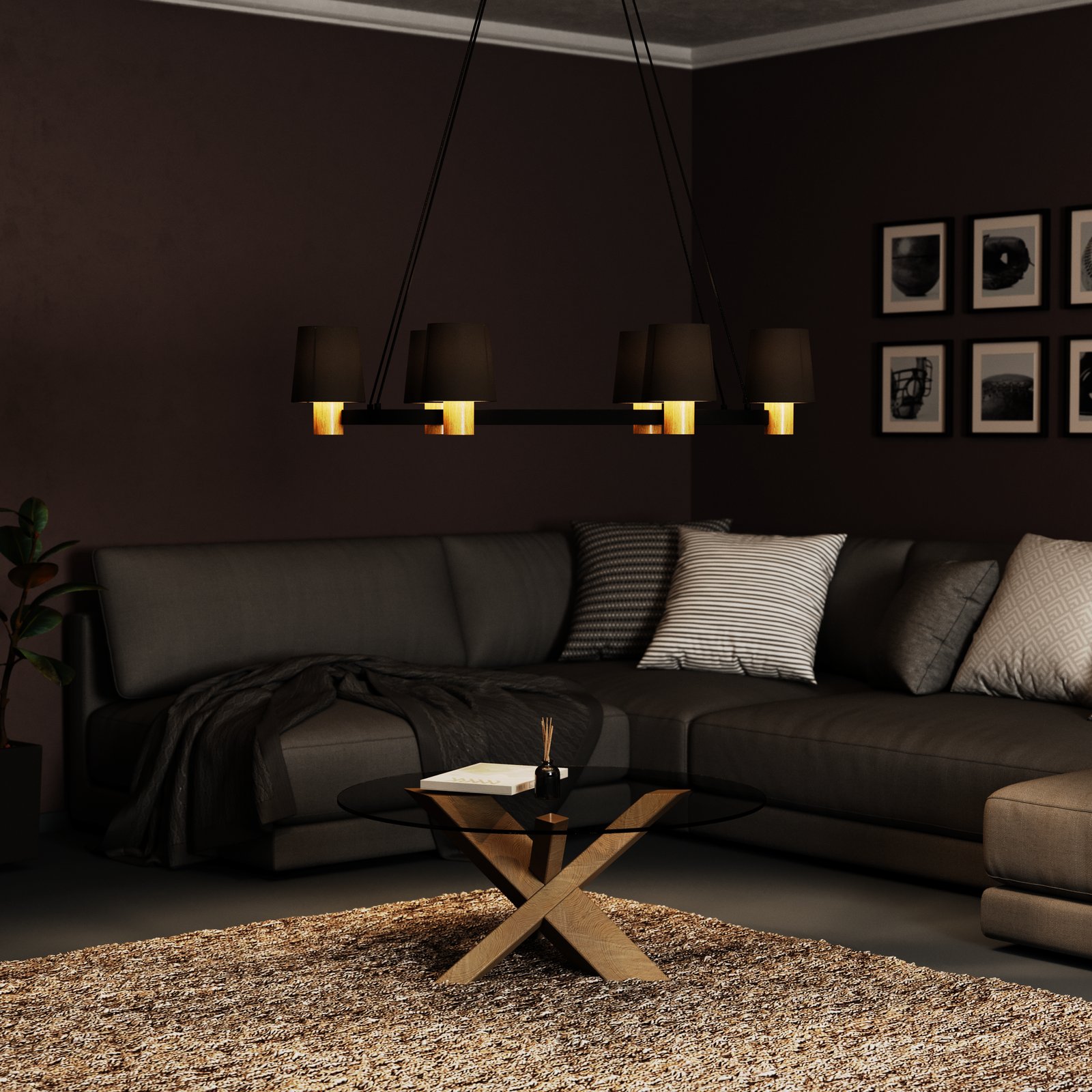 Svítidla Edale jsou vyrobena z oceli v černé barvě a textilu v cappuccino barvě. Základna má také zajímavý dřevěný prvek. Hodí se do interiéru, který je zařízen v klasickém stylu. Lustry z této sady se hodí nejen do kuchyní a jídelen, ale také obývacích pokojů, kde budou zároveň s nástěnnou lampičkou tvořit zajímavý prvek. |
