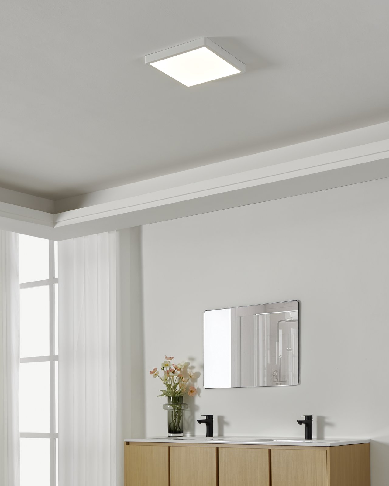 Moderní stropní svítidla jednoduchého designu, díky ochraně IP44 vhodná do koupelen, ale lze osadit i do chodby nebo předsíně. Jsou vyrobena z kovu a plastu.