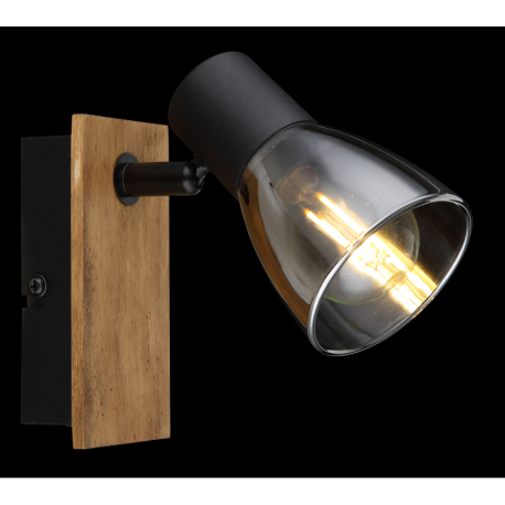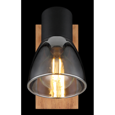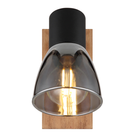 GL-54307-1W Nástěnné svítidlo, dřevo hnědé, kov černý, kouřové sklo, s vypínačem, ?xV: 7x14cm, H:16cm, bez žárovky 1xE14, max. 40W 230V - Claude