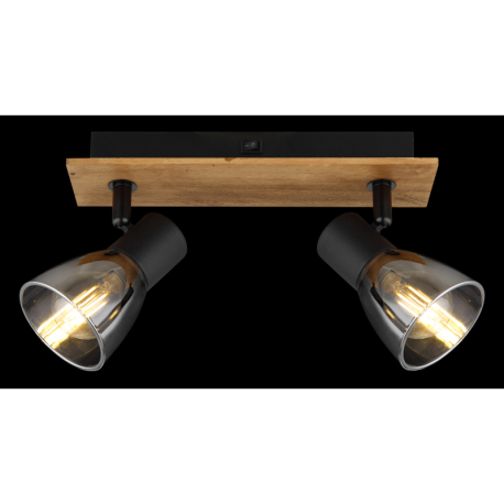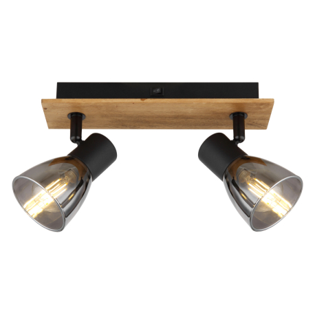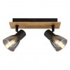 GL-54307-2W Nástěnné svítidlo, dřevo hnědé, kov černý, kouřové sklo, s vypínačem, Dx?xV: 25x7x16cm, bez žárovek 2xE14, max. 40W 230V - Claude
