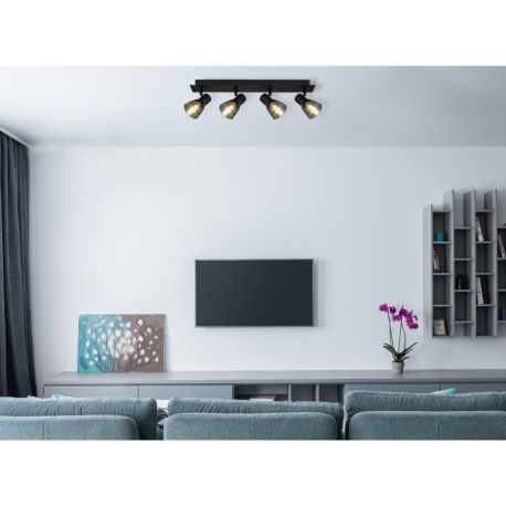 GL-54307-4 Stropní svítidlo, kov černý, kouřové sklo, Dx?xV: 50x7x16cm, bez žárovek 4xE14, max. 40W 230V - Claude 2