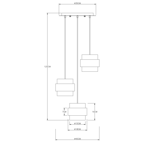 GL-15560-3H Závěsné svítidlo, kov černý matný, sklo, mosaz, Ø45cm, V:120cm, bez žárovek 3xE27, max. 60W 230V - Milley