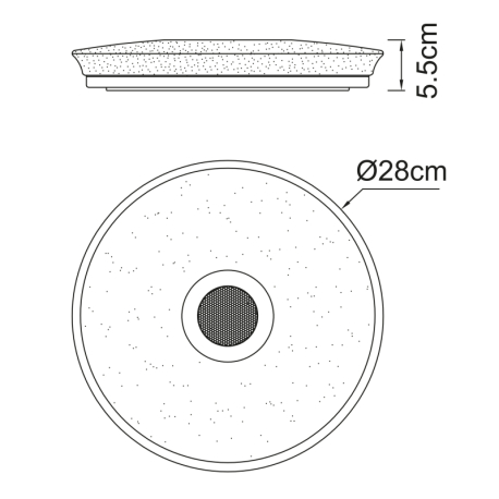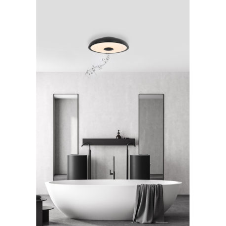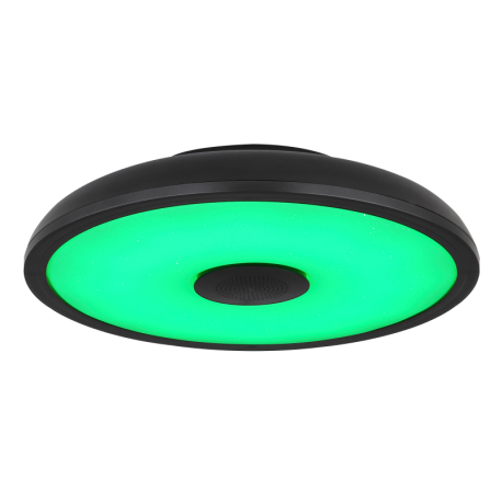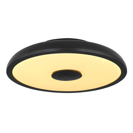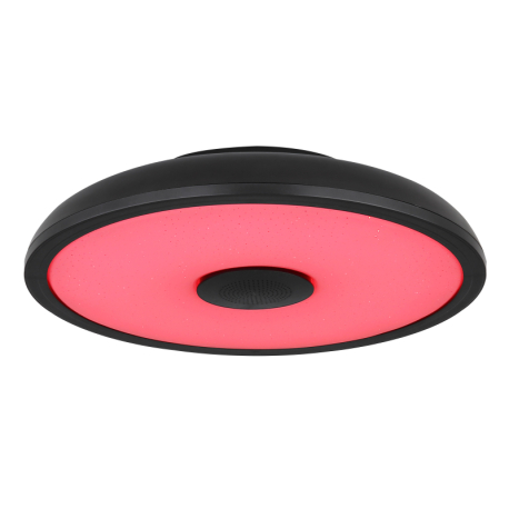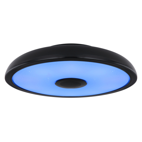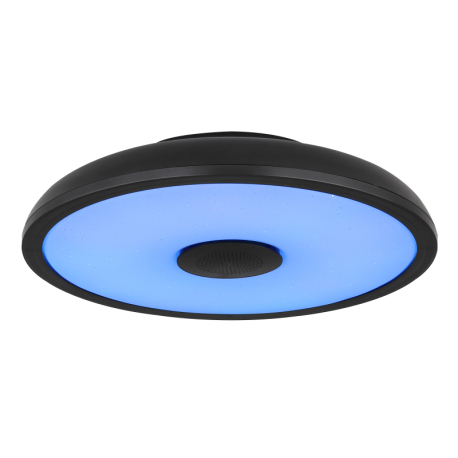 GL-41366B Stropní svítidlo, plast černý, bílý, Bluetooth, reproduktor 3W, paměťová funkce, noční světlo, třpytivý efekt, stmívatelné, IP44 dálkové ovládání, 1xAAA, Ø28cm, V:6cm, LED 18W 230V, zdroj 1800lm, výstup 820lm, RGB LED 3W, 3000-6500K - Raffy LED