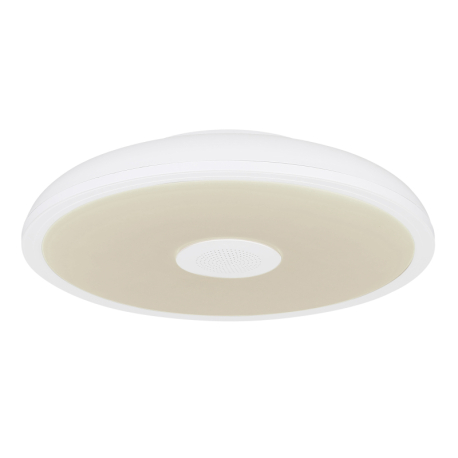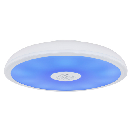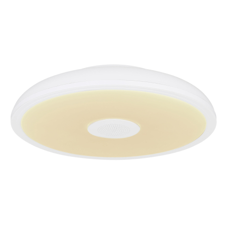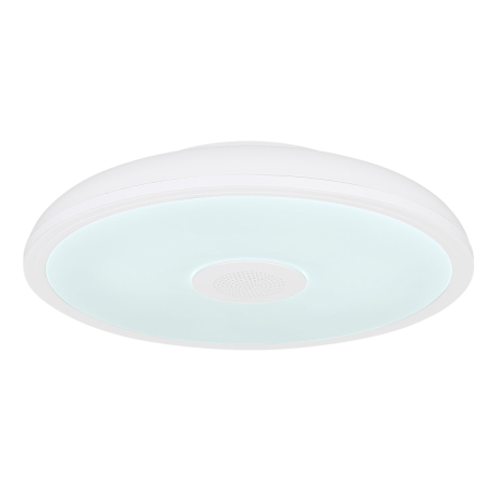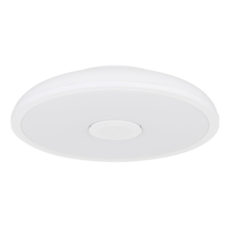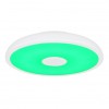 GL-41366W Stropní svítidlo, plast bílý, Bluetooth, reproduktor 3W, päm.funkcia, noční světlo, stmívatelné, IP44 dálkové ovládání, měnič barev, 1xAAA, Ø28cm, V:6cm, LED 18W 230V, zdroj 1900lm, výstup 1100lm, RGB LED 3W, 3000-6500K - Raffy LED