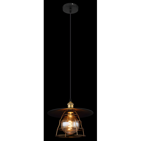 GL-15086BH1 Závěsné svítidlo, kov černý, mosaz, kovové pletivo, černý PVC kabel, Ø30cm, V:150cm, bez žárovky 1xE27, max. 60W 230V - Viejo 2