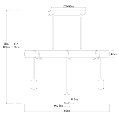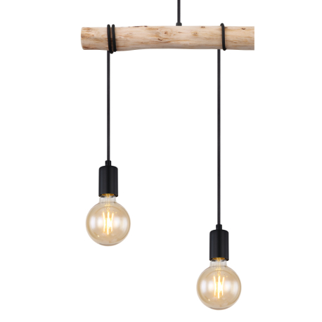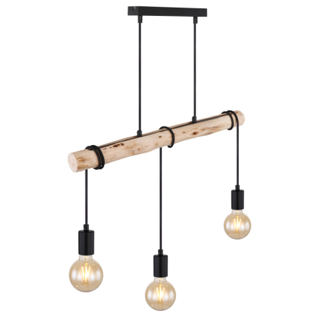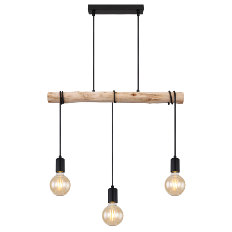 GL-15539-3H Závěsné svítidlo, kov černý, dřevo, textilní kabel černý, Dx?xV: 60x5x120cm, bez žárovek 3xE27, max. 60W 230V - Leo + Gregor