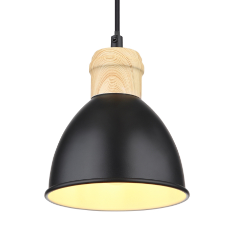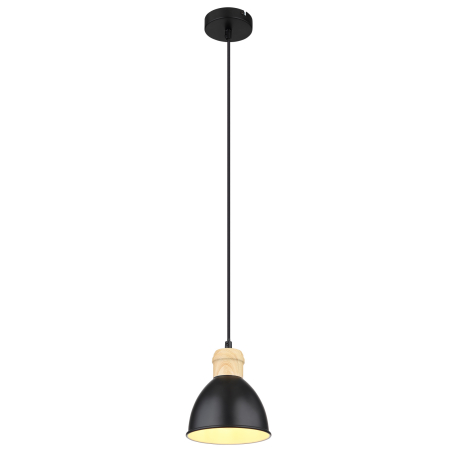 GL-54018HS Závěsné svítidlo, kov černý a bílý, kov vzhled dřeva, černý PVC kabel, Ø:15cm, V:120cm, bez žárovky 1xE27, max. 40W 230V - Wiho black