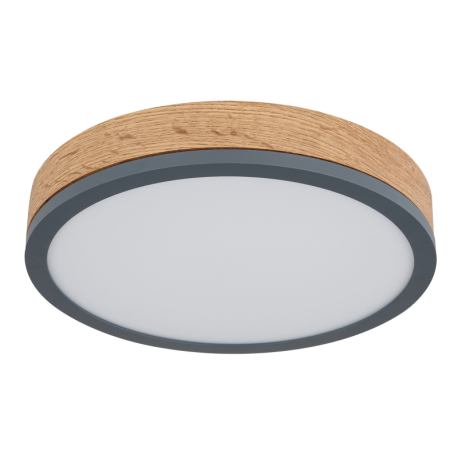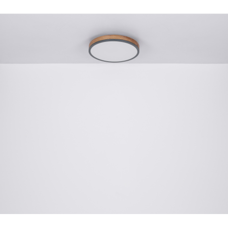 GL-416080WD1R Stropní svítidlo, kov grafit, MDF vzhled dřeva, plast bílý, Ø:30cm, V:9cm, včetně LED 12W 230V, 1600lm zdroj, 950lm výstup, 3000K - Doro LED 2