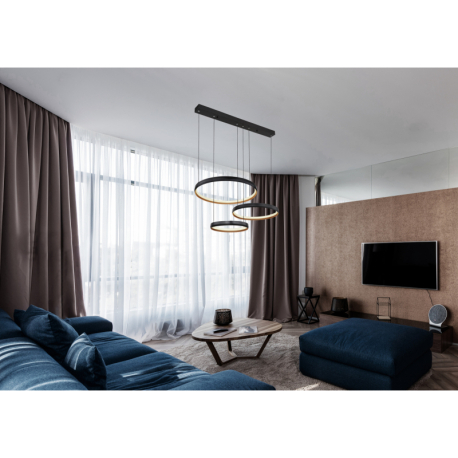 GL-67193-55H Závěsné svítidlo, kov černý/zlatý, akryl bílý, stmívatelné, vícekrokové ovládání přes nástěnný vypínač, fixace barvy, paměť, noční světlo, dál.ovládání, Dx?xV: 77x51x150cm, LED 55W 230V, 6500lm zdroj, 1800lm výstup, změna barva světla 2700- 6000K - Halli LED