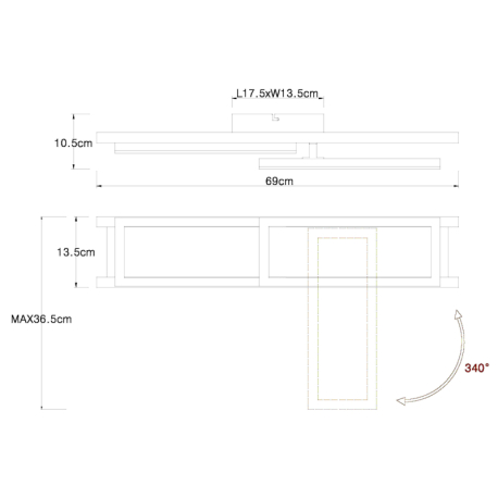 GL-67266D Stropní svítidlo, kov černý, MDF tmavě hnědý, plast bílý, otočné, Dx?xV: 69x37x11cm, včetně LED 20W 230V, 2100lm zdroj, 850lm výstup, 3000K - Illa LED