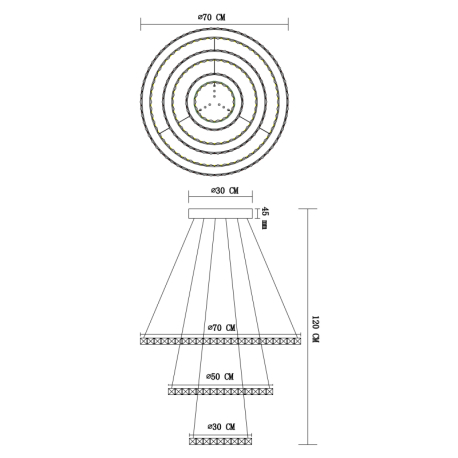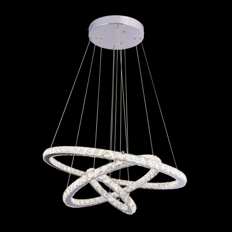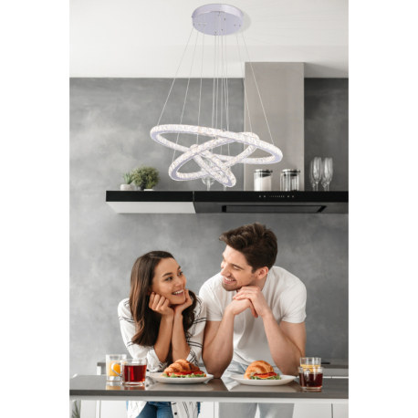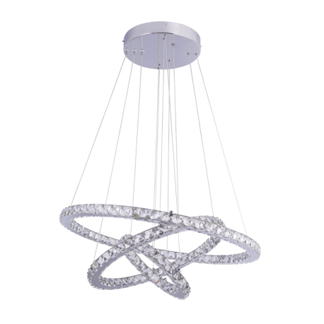 GL-67037-76 Závěsné svítidlo, chrom, K5 průhledné křišťály, pohyblivé, průměr kruhů 30cm, 50cm a 70cm, dálkové ovládání, fixace barev, Ø70cm, V:120cm, včetně 1xLED 76W 230V, 3060lm, změna barvy světla 3.000-4.000-6.000K - Marilyn LED