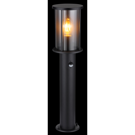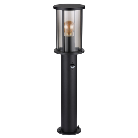 GL-31362S Venkovní svítidlo nerezová ocel černá matná, sklo kouřové barvy, kovové tyče černé matné, včetně senzoru, IP54, Ø:143mm, V:600mm, bez žárovky 1xE27 60W 230V - Gracey senzor