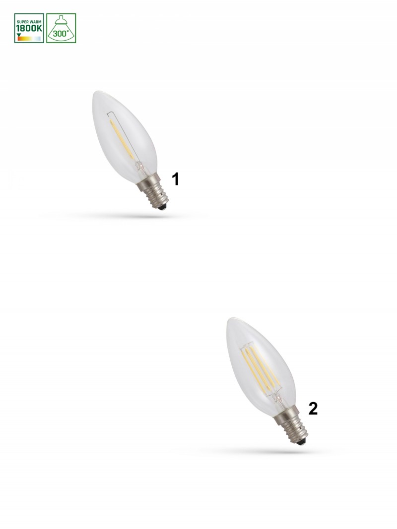 Woj-WOJ+14648 LED CANDLE E-14 230V 1W COG 1800K CLEAR SPECTRUM - SPECTRUM SUPER WARM CLEAR COG E14