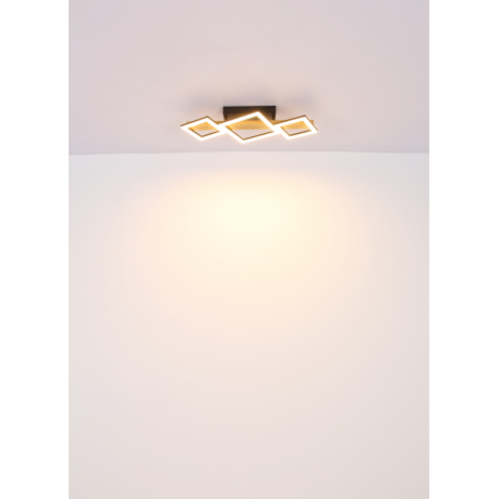 GL-67288D1 Stropní svítidlo kov černý mat, MDF imitace dřeva, ABS černý mat, plast bílý, Dx?xV:660x300x100mm, malé čtverce 16x16 cm, velké čtverce 22x22 cm, LED 29W 230V, 2900lm zdroj, 1560lm výstup, 3000K - Dustin LED