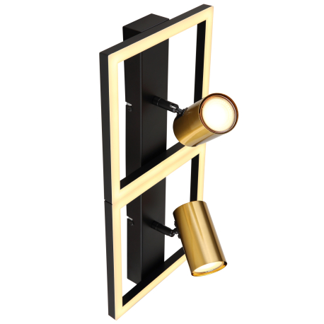 GL-57032-2 Nástěnné svítidlo kov černý matný, kov mosaz matná, plast bílý, Dx?xV:440x220x155mm, včetně LED 22W 230V, 2600lm zdroj, 1250lm výstup, 3000K, bez žárovek 2xGU10 LED 5W 230V - Marrie