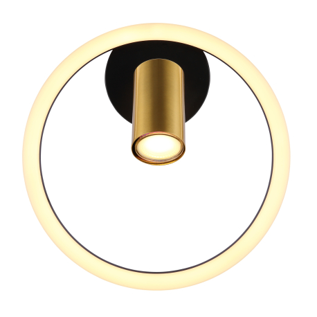 GL-57033-1 Nástěnné svítidlo kov černý matný, kov mosaz matná, plast bílý, Ø:300mm, V:150mm, včetně LED 12W 230V, 1500lm zdroj, 800lm výstup, 3000K, bez 1xGU10 LED 5W 230V - Marrie