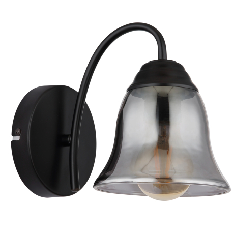 GL-60298W Nástěnné svítidlo, kov černý matný, sklo kouřové, ?xV:135x185mm, H:203mm, bez žárovky 1xE27,max. 60W 230V - Gonny