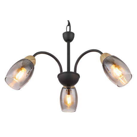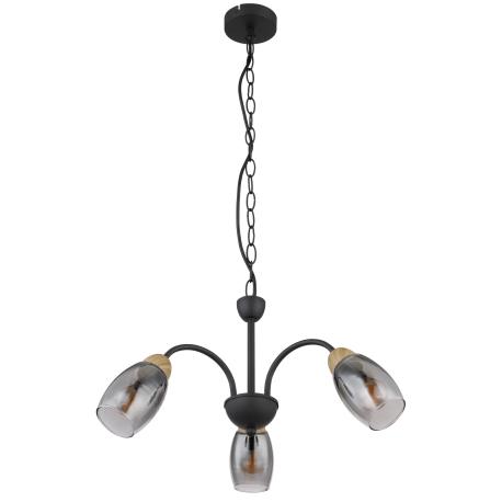 GL-60297-3H Závěsné svítidlo kov černý matný, sklo kouřové barvy, kov imitace dřeva, kabel PVC černý, Ø:470mm, V:1200mm, bez žárovek 3xE14 25W 230V - Gerly