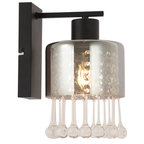 GL-15884W Nástěnné svítidlo, kov černý matný, sklo kouřové, skleněné kapky průhledné, akrylové křišťály průhledné, směr světla dolů, ?xV:150x260mm, H:193mm, bez žárovky 1xE27, max. 60W 230V - Hendry