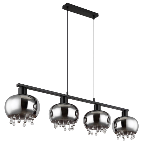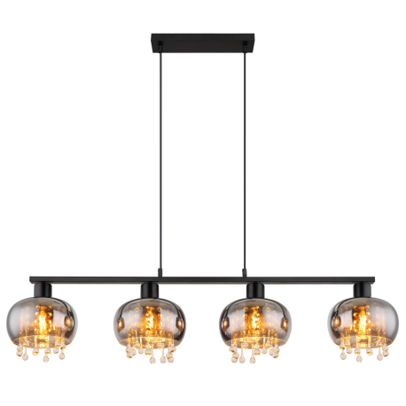 GL-15839-4H Závěsné svítidlo, kov černý matný, sklo kouřové, skleněné křišťály průhledné, textilní kabel černý, možnost nastavení výšky, Dx?xV:1140x210x1200mm, bez žárovek 4xE27 LED, Max. 9W 230V - Corry