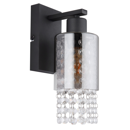 GL-15799W Nástěnné svítidlo, kov černý matný, sklo kouřové, skleněné krystaly čiré, směr světla dolů, ?xV:100x270mm, H:150mm, bez žárovky 1xE27 40W 230V - Backey