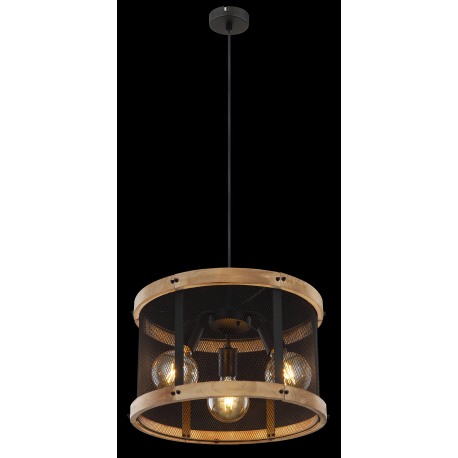 GL-15661H1 Závěsné svítidlo kov černý matný, dřevo tmavě hnědé, kabel textil černý, Ø:400mm, V:1200mm, bez žárovek 3x E27 40W 230V - Jeanie