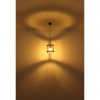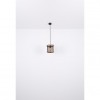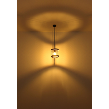 Zajímavý lustr na textilním kabelu vyrobený ve vintage stylu z kovu v matné černé barvě a ze dřeva v tmavé hnědé barvě. |
