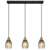 GL-15706-3H Závěsné svítidlo kov černý matný, kouřové sklo, imitace tmavého dřeva, kabel PVC černý, možnost nastavení výšky, Dx?xV:550x100x1200mm, bez žárovek 3xE27 15W 230V - Reid