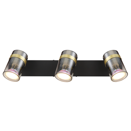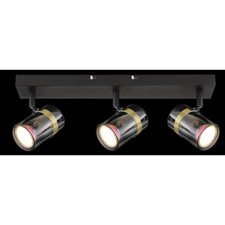 GL-57916-3 Stropní svítidlo, bodové, kov černý matný, kouřové sklo s přechodem do průhledného skla, kov mosaz, Dx?xV:410x60x125mm, bez žárovek 3xGU10,max. 8W 230V - Trabby