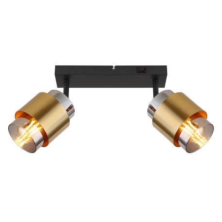 GL-15560-2 Nástěnné svítidlo kov černý matný, sklo kouřové barvy, mosazný kroužek, vypínač, Dx?xV:260x100x125mm, bez žárovek 2x E27 40W 230V - Milley Globo