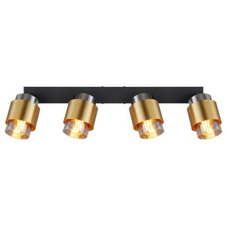 GL-15560-4 Stropní bodové svítidlo kov černý matný, sklo kouřové, mosazný kroužek, Dx?xV:650x100x125mm, bez žárovek 4x E27 40W 230V - Milley Globo