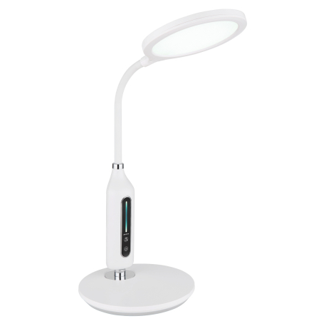 GL-58435W Stolní svítidlo plast bílý matný, chrom, dotykové zapínání/vypínání, plynulé dotykové stmívání, paměťová funkce, flexo, Dx?xV:300x185x407mm, délka kabelu 1300mm, LED 9W 230V, 22-800lm zdroj. 8-530lm výstup, CCT 3000-4000-6500K - Fruggy LED