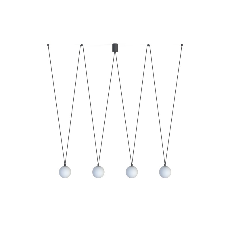 Moderní lustry vyrobené z oceli v černé barvě. Stínidla tvoří koule z bílého skla. Hodí se do obývacích pokojů, ložnic, kuchyní nad kuchyňský ostrůvek, předsíní apod. |